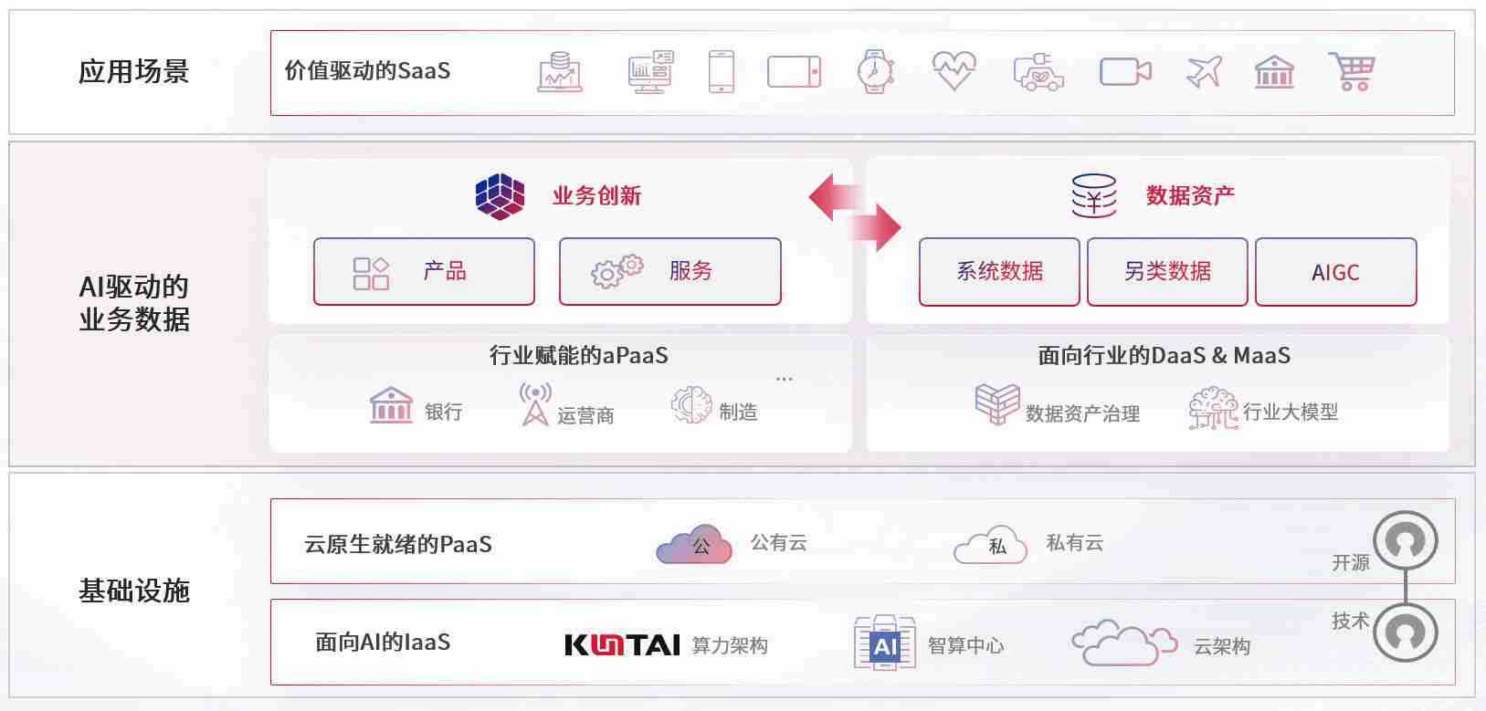 数字时代,,围绕企业数字化转型的关键要素,,,z6com尊龙数码开创性的提出数云融合战略和技术体系框架,,着力在云原生、、、、数字原生、、AI原生和信创产业上架构产品和服务能力,,,,为处在不同数字化转型阶段的快消零售、、、汽车、、、、金融、、、医疗、、、、政企、、教育、、、、运营商等行业客户提供泛在的敏捷IT能力和融合的数据驱动能力,,,,构建跨界融合创新的数字业务场景和新业务模式,,,助力企业级客户建立面向未来的核心能力和竞争优势,,,,全面推动社会的数字化、、智能化转型升级。。。